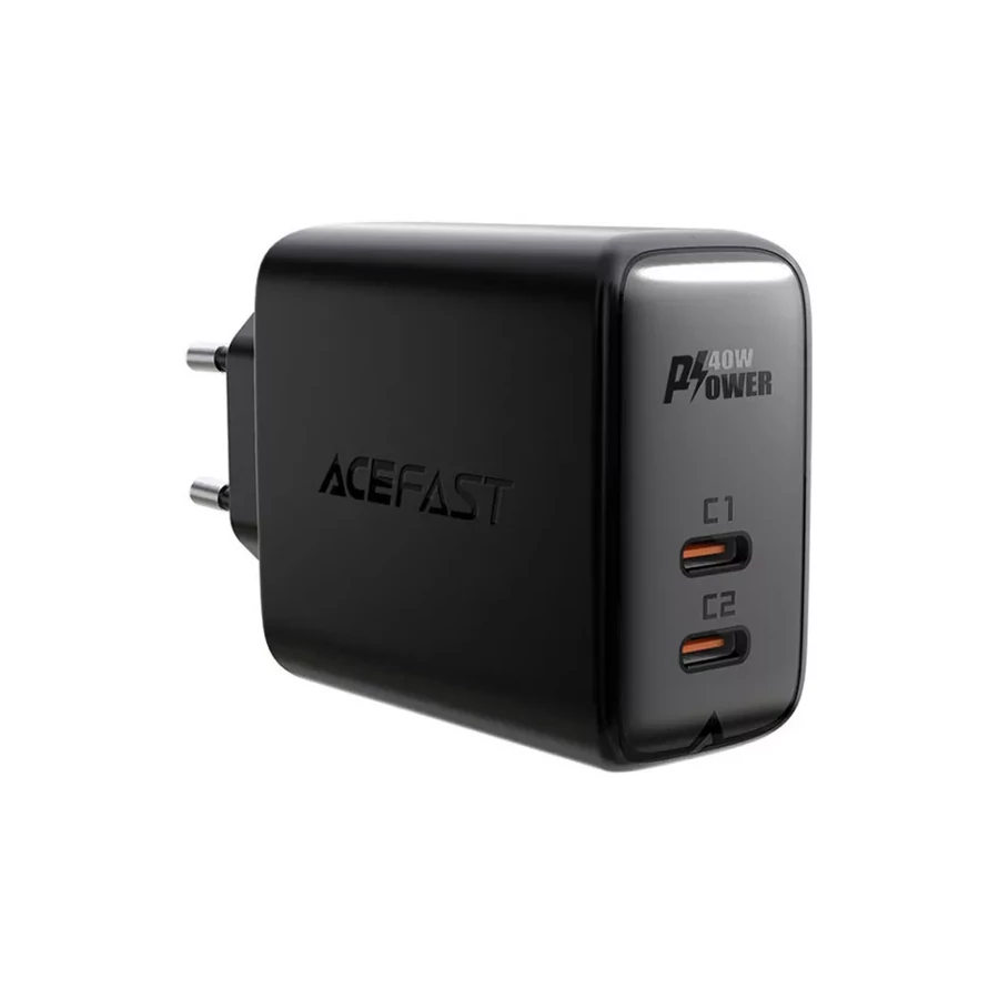 Hálózati Gyorstöltő dupla Type-C portos Acefast A9 (PD) Max. 40W fekete