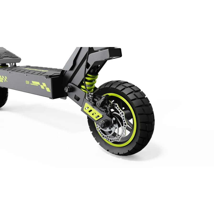 A D1 gyorszáras összecsukó mechanizmusa másodpercek alatt kompakt méretűre csökkenti a rollert – elfér egy autó csomagtartójában, liftben vagy irodai sarokba állítva. Az összecsukott állapotban a jármű stabil és kézzel gurítható, így a hordozás sem jelent gondot. A robusztus zárszerkezet biztosítja, hogy menet közben ne nyílhasson ki véletlenül.