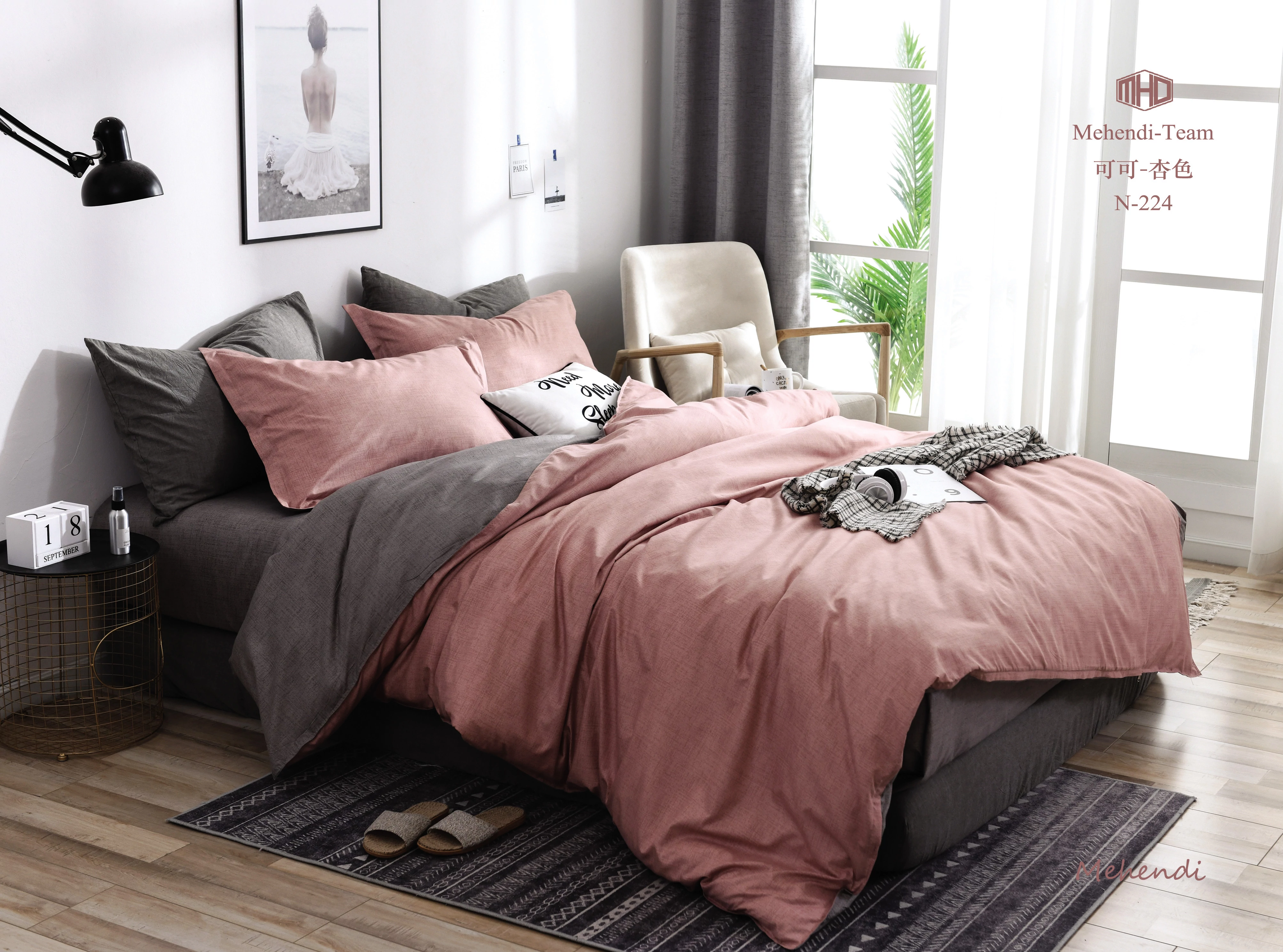 LUNA ágynemű garnitúra 3 részes 3D rózsaszín-szürke