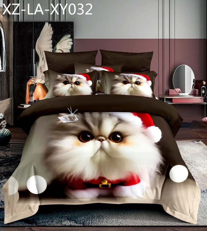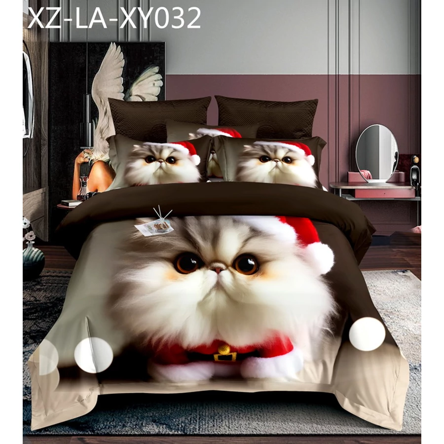 LUNA ágynemű garnitúra 7 részes 5D Karácsonyi cicás