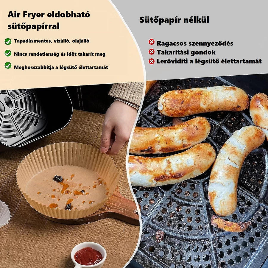 Az olajsütő eldobható sütőpapírja ugyanolyan tisztán tartja a sütőt, mint használat előtt, és megakadályozza, hogy ételmaradékok és zsírfoltok maradjanak az edényen.