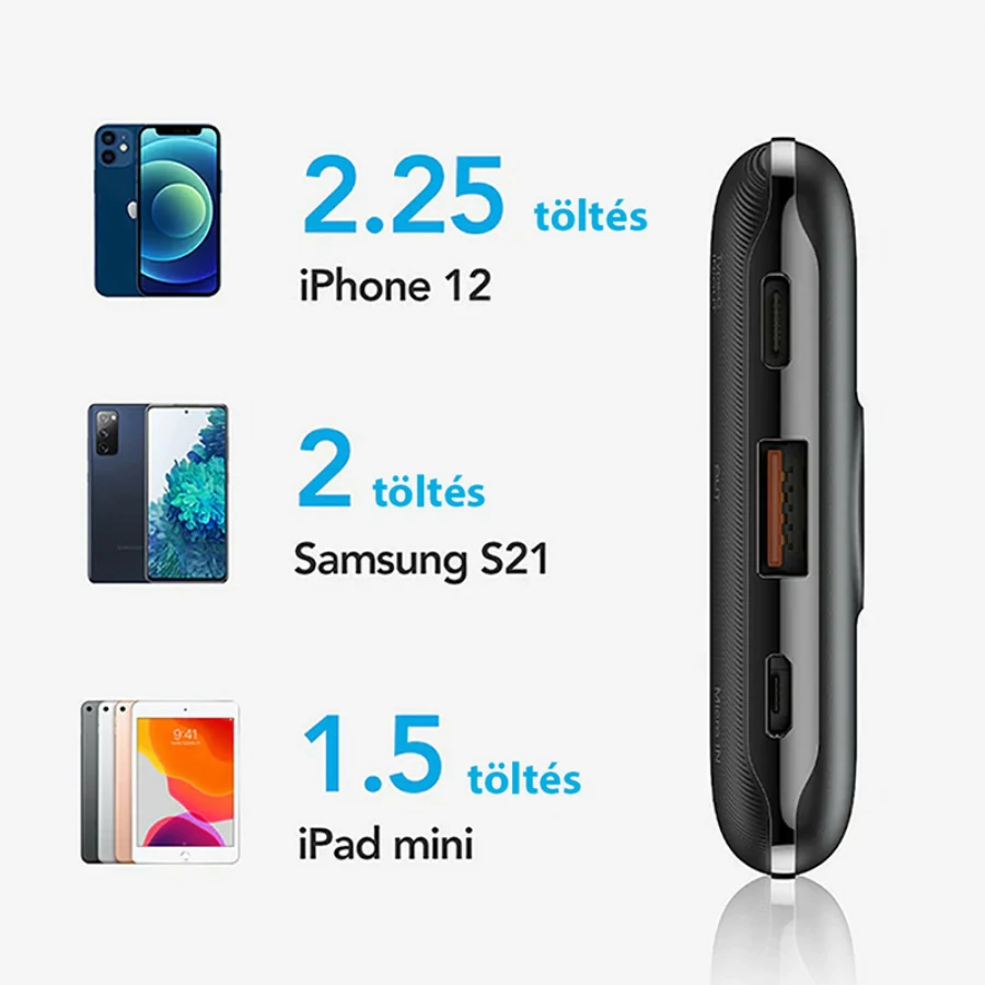 | Csatlakozók | Type-C, USB, Micro USB - akár egyszerre 2 eszközt is tölthetsz |